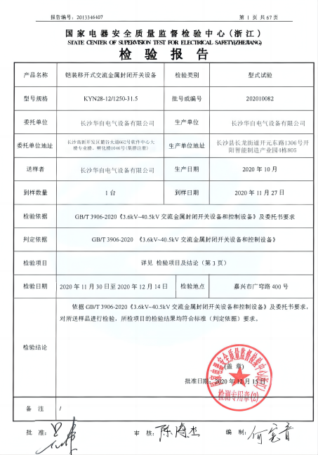 铠装移开式交流封闭开关涉笔检验报告